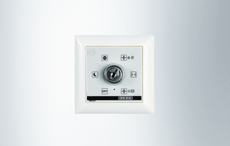 Mechanische programmaschakelaar met geintegreerde sleutelschakelaar. Bediening van de programmaschakelaar gebeurt mechanisch en is alleen mogelijk door middel van de geintegreerde sleutelschakelaar (verplicht voor deuren in vlucht- of reddingswegen).