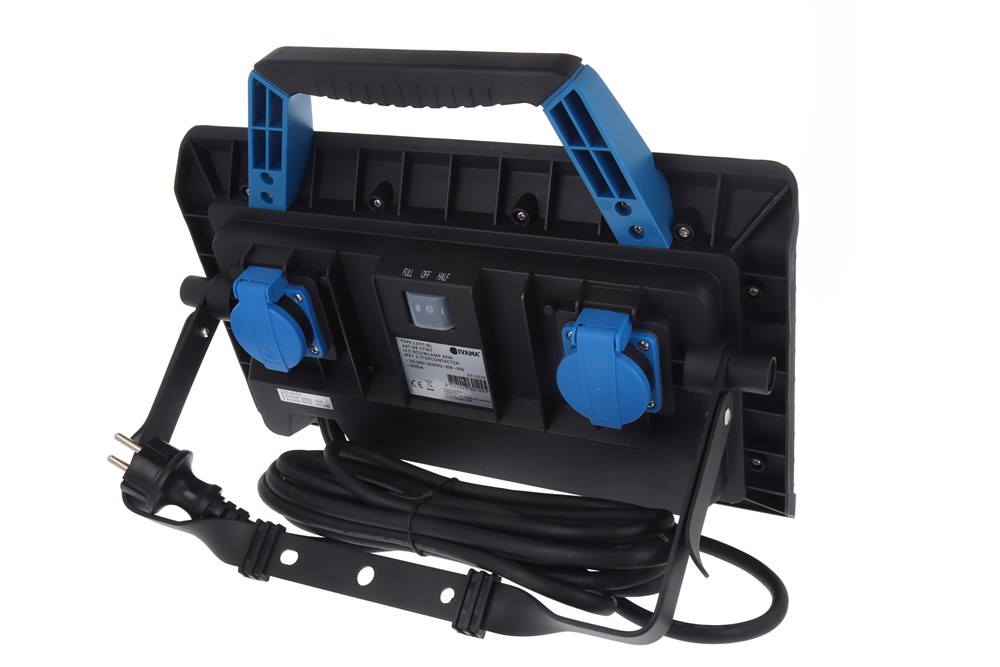 57183- Klasse 1 45/90 Watt LED bouwlamp, met een lichtopbrengst tot 4.950/9.200 Lumen en een kleurtemperatuur van 6.500 Kelvin biedt deze lamp helder en gelijkmatig licht voor optimaal zicht. Dankzij de IP54-beschermingsgraad is hij bestand tegen stof en spatwater, waardoor hij geschikt is voor zowel binnen- als buitengebruik. De robuuste kunststof behuizing en slagvastheid IK08 zorgt voor een lange levensduur, zelfs in zware werkomstandigheden. Voor extra gebruiksgemak is de lamp uitgerust met twee VDE-stopcontacten en een schakelaar waarmee de lichtsterkte eenvoudig op 50% of 100% kan worden ingesteld. De vijf meter lange H07RN-F 3G1.5mm kabel met stekker maakt hem flexibel en direct klaar voor gebruik.