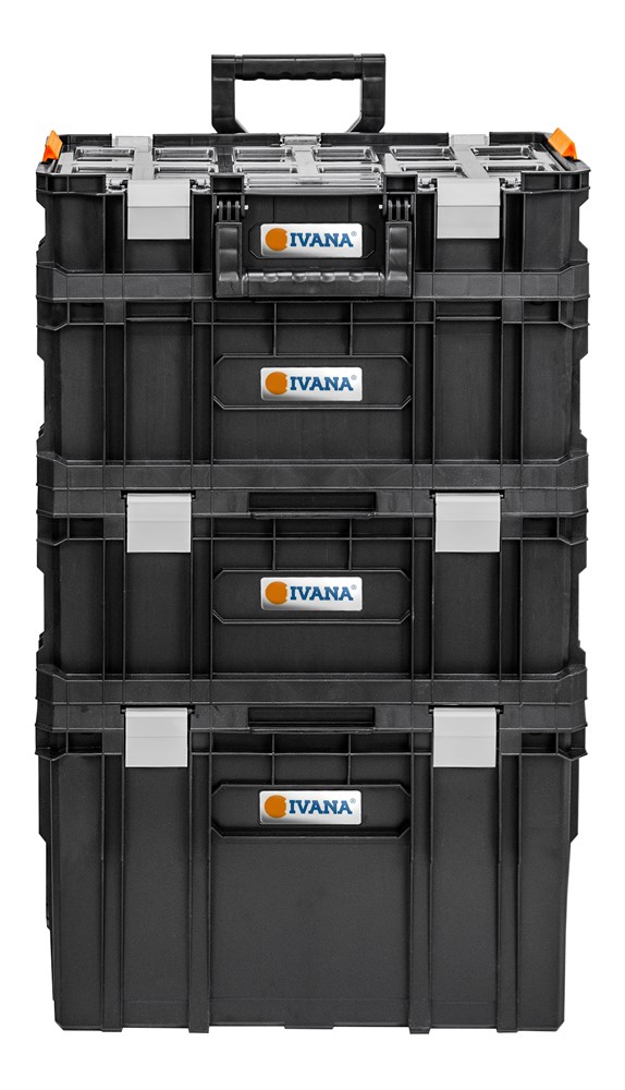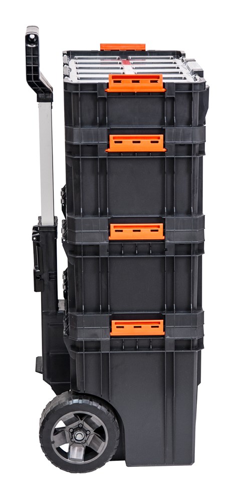 De compacte mobiele werkplaats met veel opbergruimte voor klein gereedschap en accessoires. Voorzien van stevige connectors, een telescoop handvat en grote wielen met metalen as. De set bestaat uit de organiser 2, box 2 200, gereedschapsbak 2 en trolley 2.