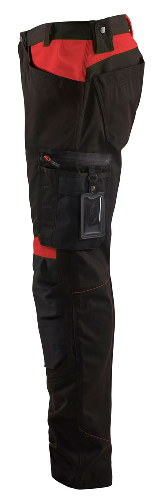 De broek heeft ook twee achterzakken, een lus voor een hamerhouder, een versterkte duimstokzak, pennenzak en messenhouder.