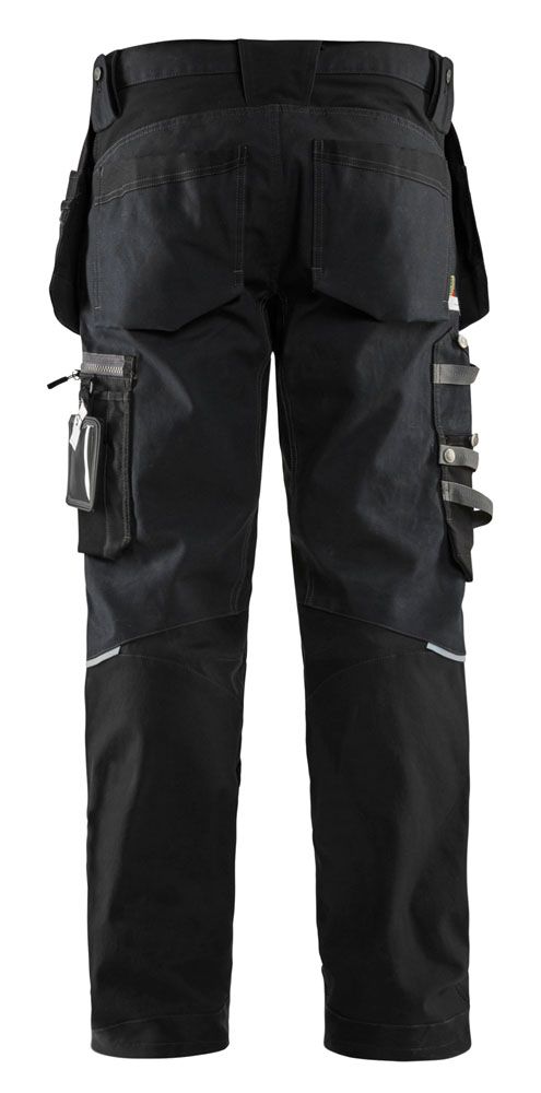 WERKBROEK MET STRETCHPANELEN EN SPIJKERZ. ZWART C58