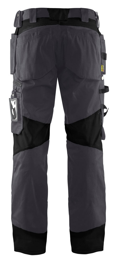 • De broek heeft ook twee achterzakken, een lus voor een hamerhouder, een versterkte duimstokzak, pennenzak en messenhouder.