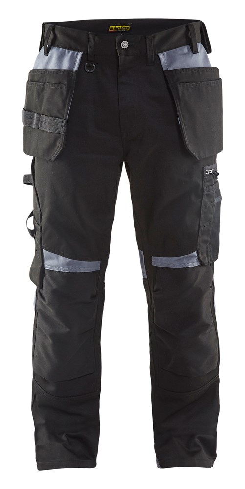 Functionele en comfortabele werkbroek met eenvoudig te bereiken zakken, zoals een telefoonzak van stretchmateriaal waar de meeste mobiele telefoons inpassen.