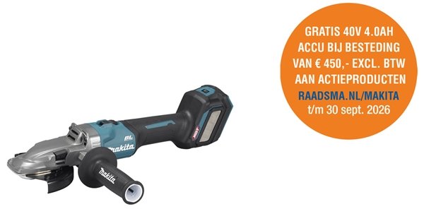 Voor intensief gebruik, sterke Makita 125 mm accuslijper met vastzetschakelaar.